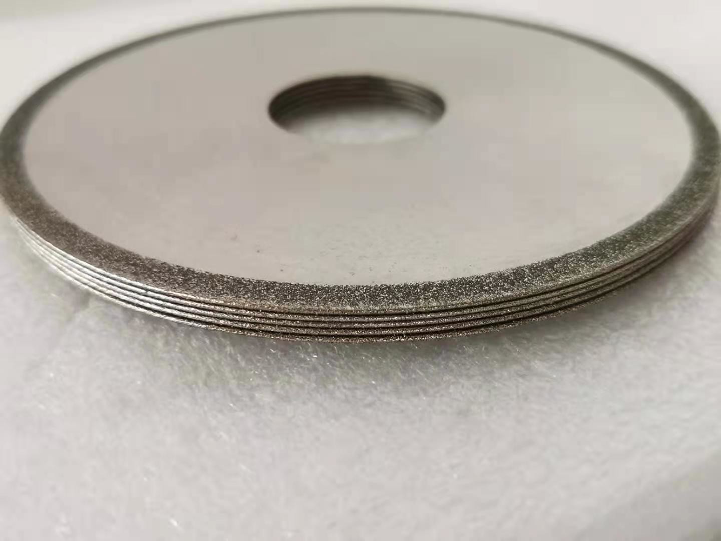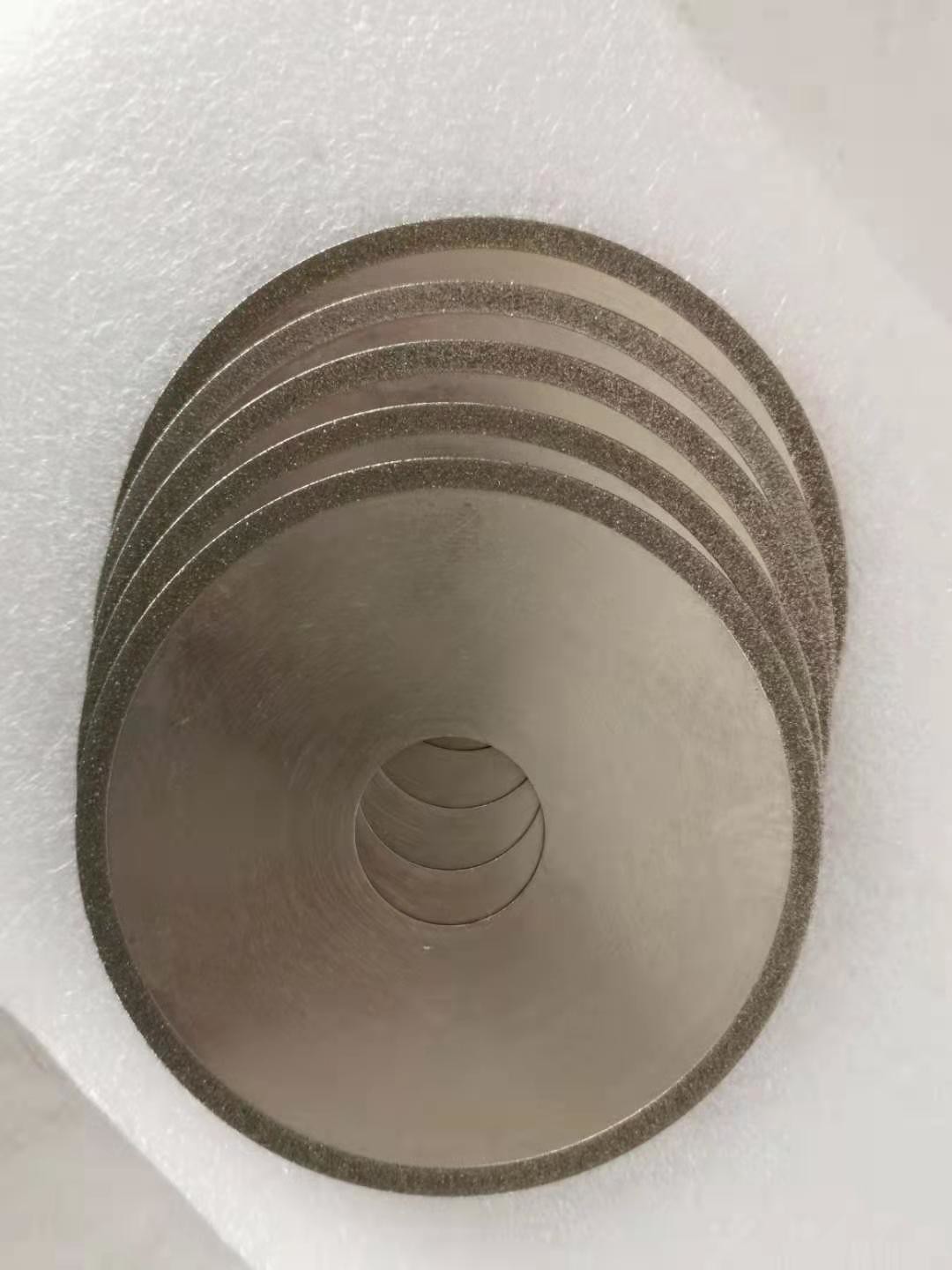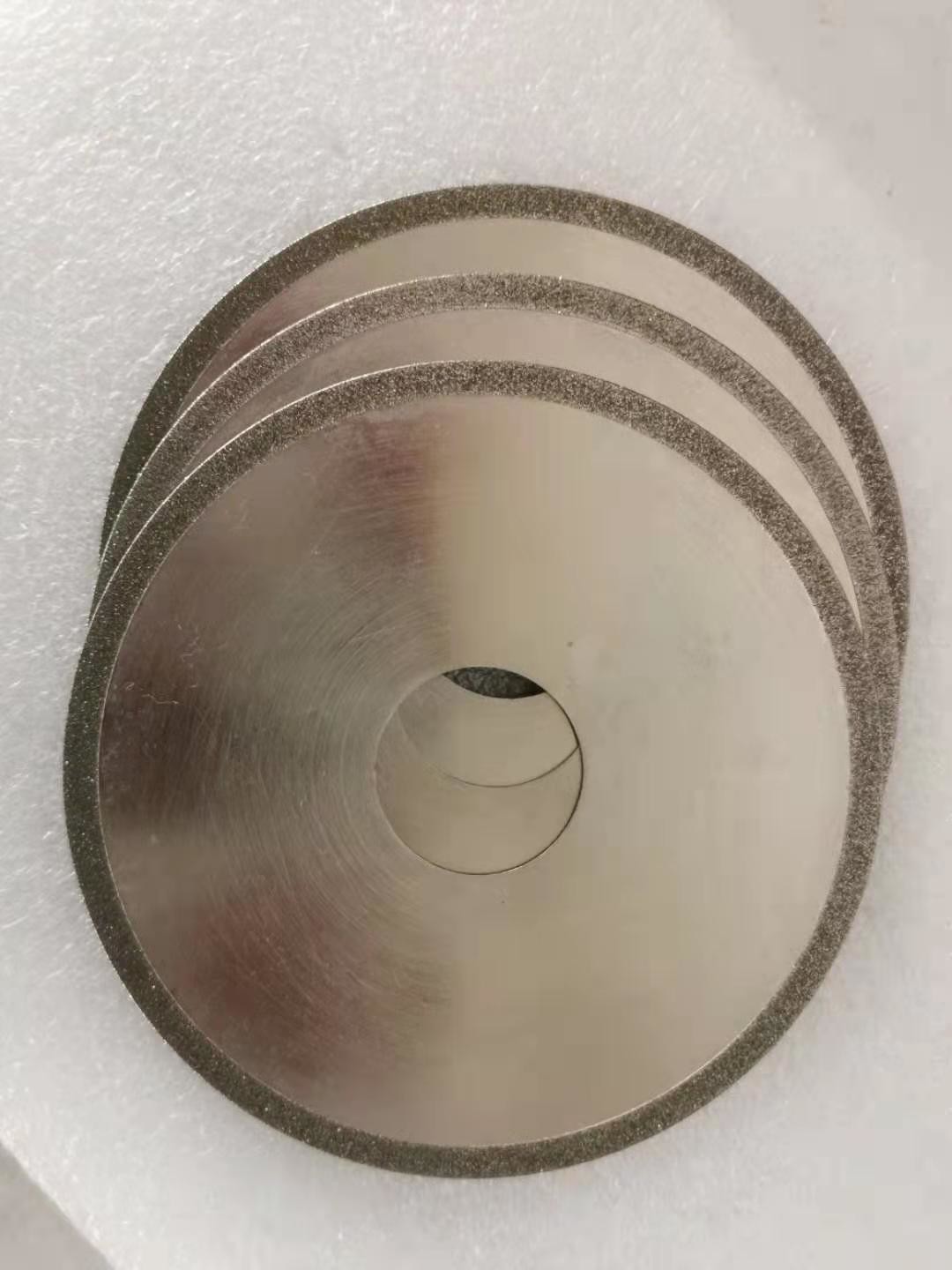 Pour la lame de scies de diamant, la couche fonctionnante de la meule contient les grains abrasifs de diamant, et les abrasifs de diamant sont collés sur le substrat par un lien en métal. D'abord, l'épaisseur du lien en métal déposé est 20% de la taille des grains abrasifs de diamant (ponçage), et alors le lien en métal est employé pour coller (s'épaissir) les grains abrasifs de diamant, et l'épaisseur est environ 2/3 de la taille des grains abrasifs.