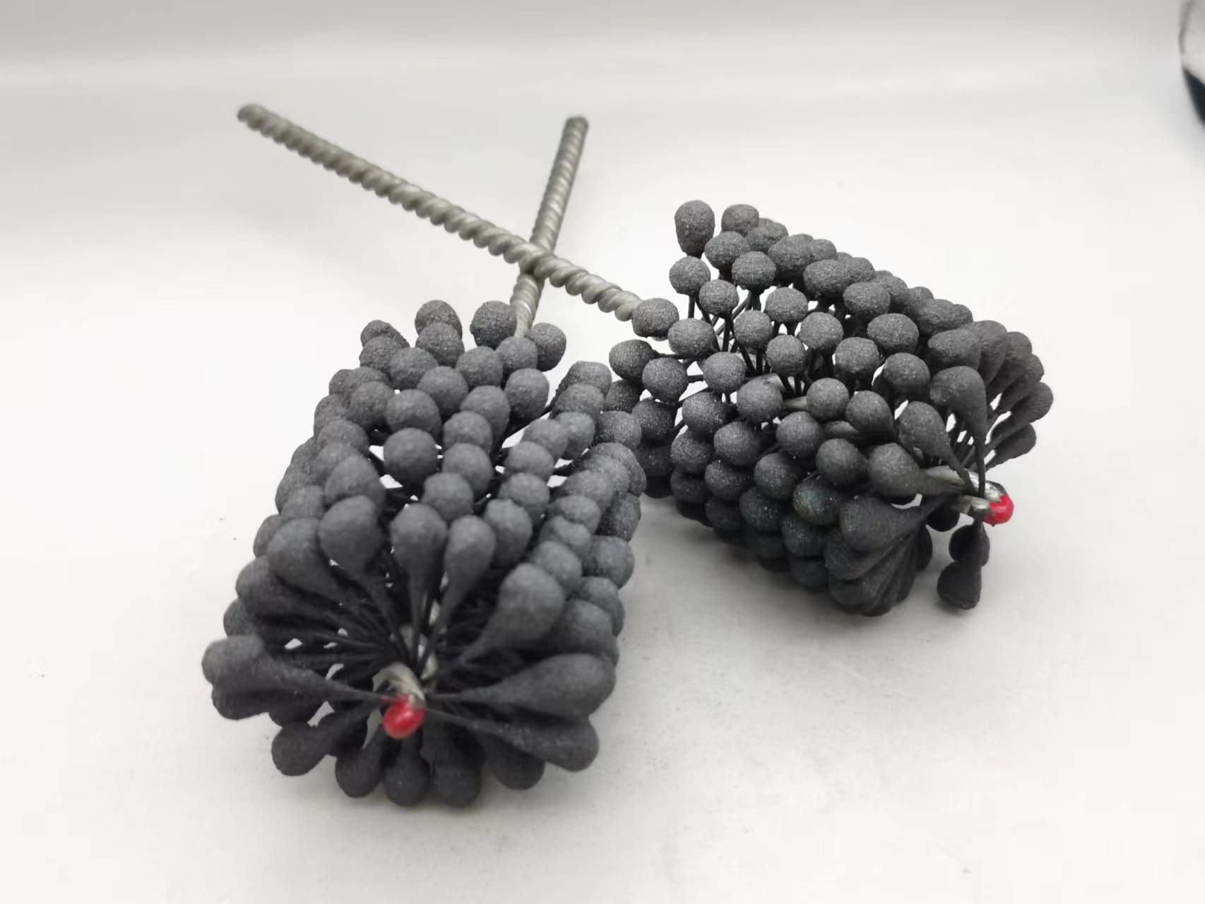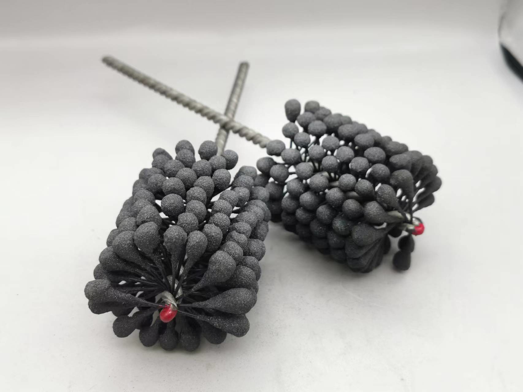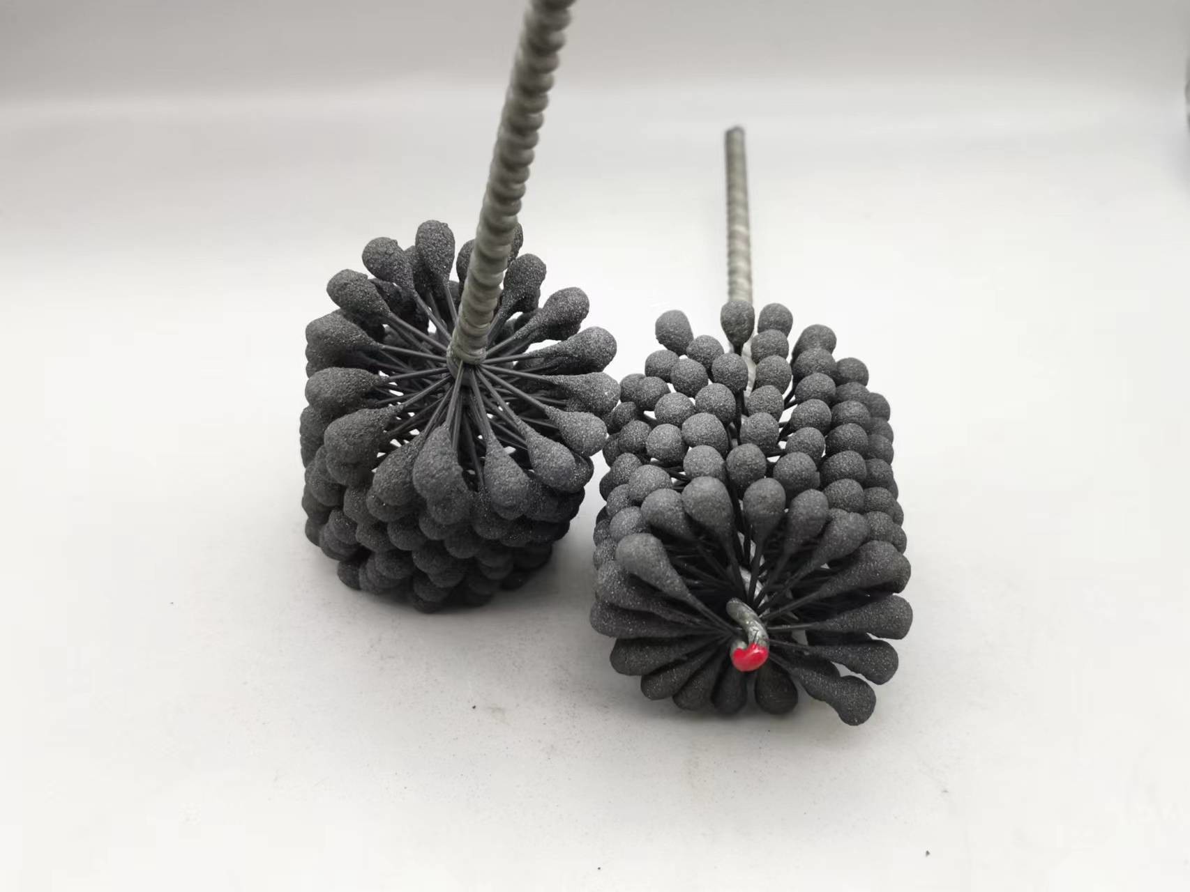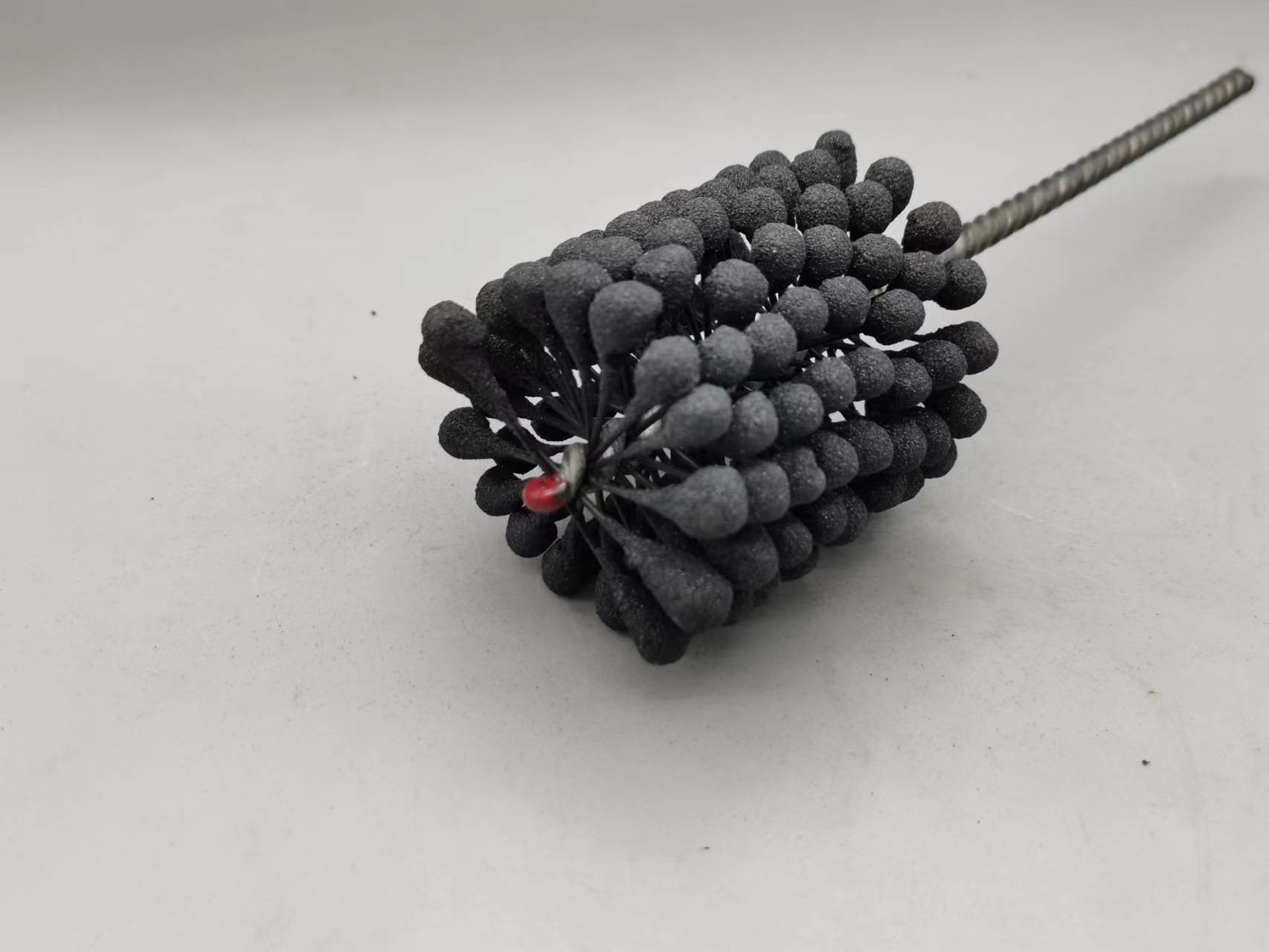 1. Cette pierre à aiguiser flexible de cylindre de produit est une brosse aiguisante résiliente et flexible avec des abrasifs de carbure de silicium pour l'usage sur l'acier doux, l'acier inoxydable, et la fonte. La brosse fournit l'action de coupure douce et enlève des bavures des trous croix-forés. La suspension indépendante assure d'auto-centrage, auto-dressant au trou, et à l'auto-compensation l'usage.
